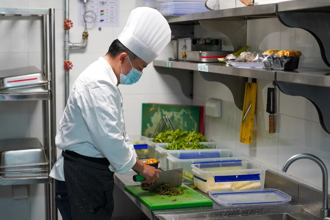考虑到社区食堂的主要食客是老年群体,厨师长在烹饪过程中,特意做了适老化调整,严格落实少油少盐的烹饪原则。厨师长夏德均说,相比常规菜品,盐量减少20%,油量减少30%,而且所有食用油均选用非转基因产品,从源头保障老人的饮食安全。“春季的蚕豆、春笋,做法也以清淡软糯为主,更适合老年人。”