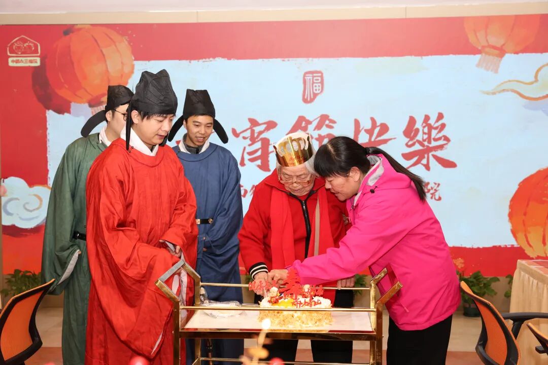 三福院内各类集市摊位一字排开,锦鲤灯笼、五彩气球装饰其中,处处洋溢着喜庆祥和的节日气息。游园会前,三福院为3月过生日的长者们集体庆生。来自常乐艺术团的志愿者们带来空灵鼓表演,老人们围坐在一起欣赏表演。三福院准备了生日蛋糕,老人们边吃边说:“我在这里10年多了,每个生日都没有拉下,真好。”本次生日会最年长的老人已经百岁,老人的外甥女特意赶来,为老人庆生。
