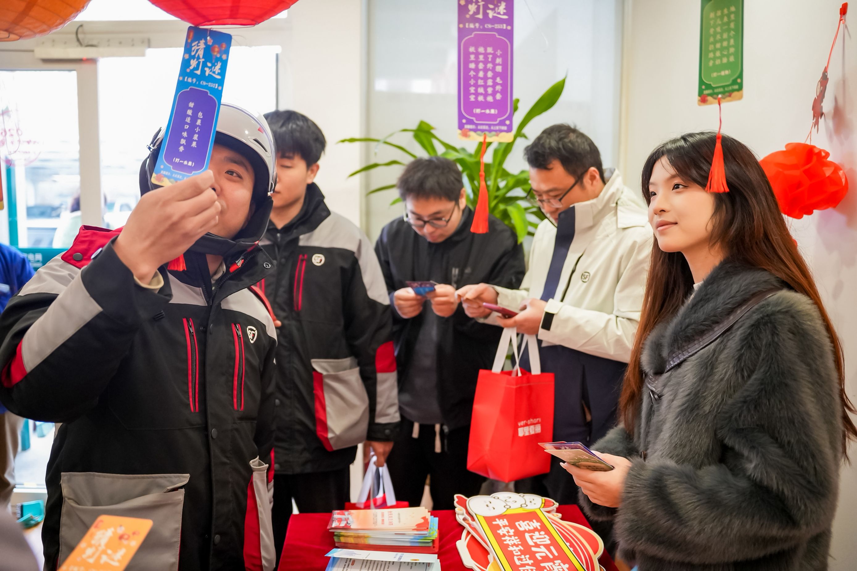 西木党群服务中心爱心接力站现场人气满满,百余位快递小哥、外卖骑手在街道总工会的热情邀约下来到活动现场,路过的建筑工人、环卫工人也纷纷停下脚步进站品尝汤圆,接过一碗碗热气腾腾的汤圆,软糯香甜在舌尖化开。餐后,大家围聚灯谜区解锁民俗乐趣,有人提笔写下新年期许,现场欢声笑语此起彼伏,热闹温馨的场景成为徐汇街头最浓的烟火气。