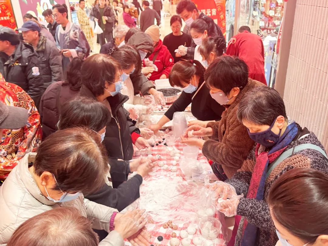 元宵节自然少不了汤圆,商场另一边的汤圆派送摊位前早已排起了长队。工作人员将一碗碗热气腾腾的“柿柿如意”汤圆送到顾客手中,传递着新春的美好祝福,500份免费汤圆很快派发一空。不仅能吃还能亲手制作,现场还特别设置了手工汤圆体验区。大家在现场工作人员的指导下,揉面、搓馅、包圆,既有传统的芝麻馅,也有本地特色的肉馅,勾起了不少市民从前自己亲手包汤圆的元宵记忆。