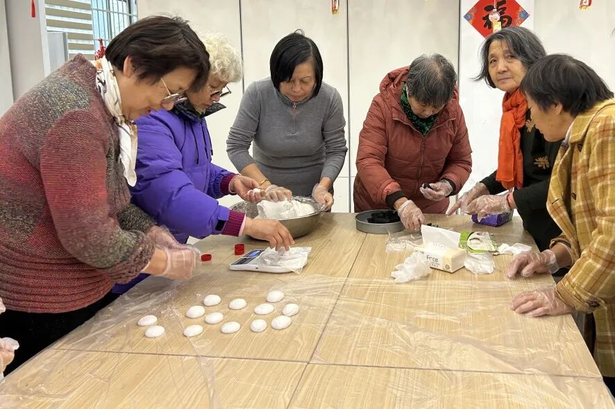 “我子女都在国外,往年元宵节家里冷清得很。”独居老人王桂英得知社区要办活动,早早就报了名,主动来当志愿者。“我想为社区出点力,让这些一年到头都回不了家的小伙子和居民们一起热闹热闹。”说话间,她手里也没闲着,揪下一小块面团,给大家演示元宵如何收口,“虎口收,这样煮的时候不漏馅。”