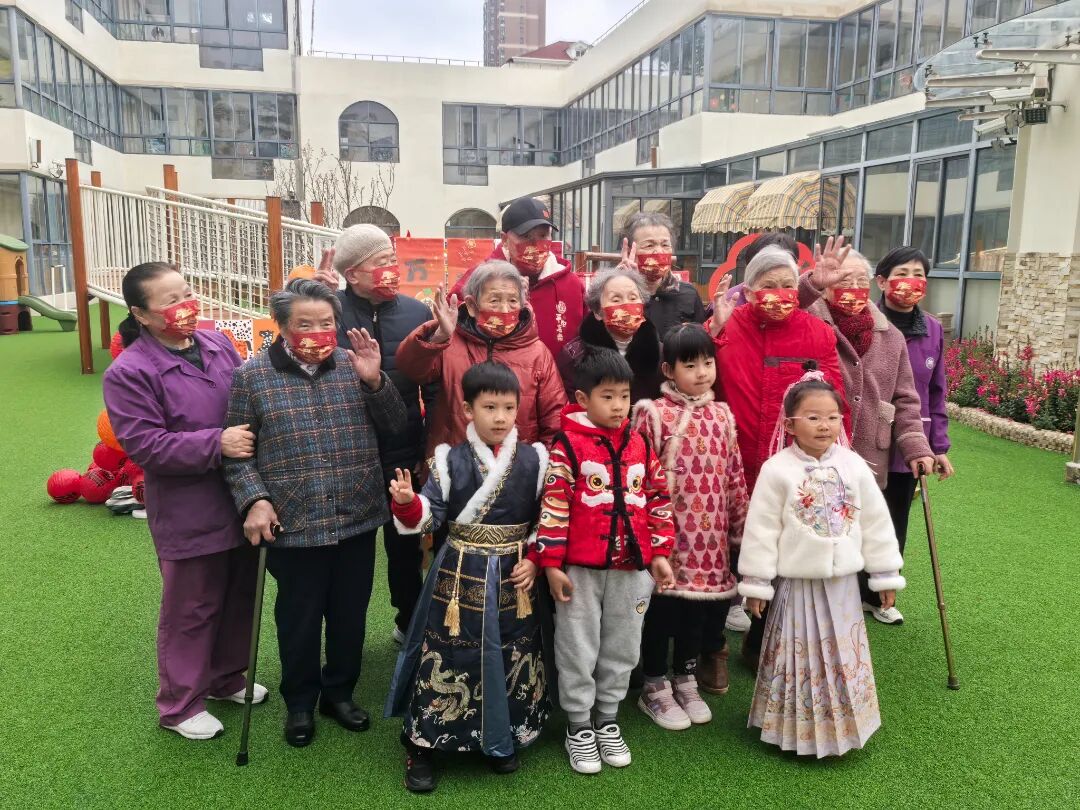 活动当天,果果幼儿园里张灯结彩,两家福利院的老人在工作人员的照护下来到幼儿园。幼儿园的孩子们打扮一新,身着传统服饰,热情地挥着小手,欢迎到访的爷爷奶奶们。
