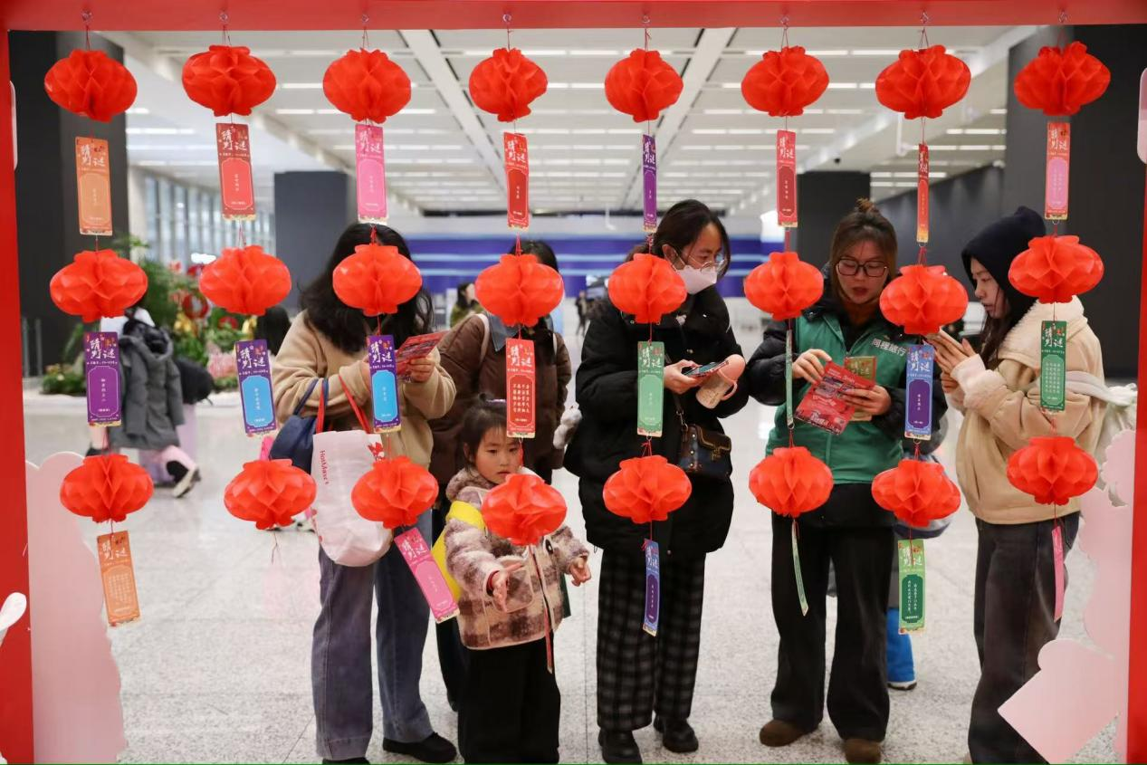 “我退休二十年了,一直坚持参加各种志愿活动,这是第一次来虹桥火车站参加活动。”负责剪纸摊位的金中先生一边展示手中的作品,一边分享道,“这些剪纸都是我亲手设计的,希望能给刚到上海的人送去一份祝福。”除了手作体验,猜灯谜活动也让旅客们跃跃欲试,答对者还能领取一杯热奶茶。人来人往的火车站,在这一刻,竟有了几分“家”的味道。