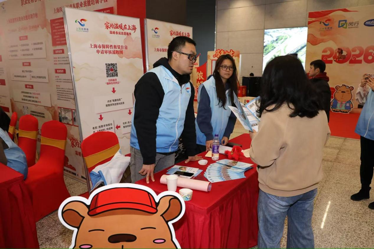 这场“一站式”的志愿服务集市,只是2026年“家的温暖在上海”春运志愿服务的一个缩影。春运期间,市委社会工作部联合中国铁路上海局集团、各相关区委社会工作部,在铁路虹桥站、上海站、上海南站、上海松江站、上海西站、安亭西站、安亭北站以及浦东、虹桥机场等9个枢纽站点,设置志愿服务站(岗)232个,社会化招募教师、大学生、公交司机、医护人员、社区居民等7175名志愿者,在爱心送站、乘车引导、应急救助、幼儿看护等岗位累计服务6.5万小时,服务旅客达224万人次。从虹桥枢纽出发,一批批返沪建设者带着这份“到沪即到家”的温暖,奔赴各自的工作岗位,开启新一年的奋斗征程。