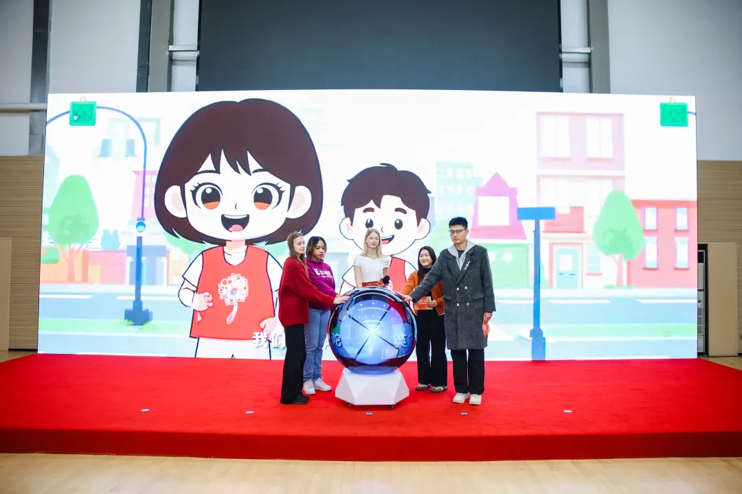 中外学生组成的“融益”全球青年志愿者服务队成员揭晓上海普陀志愿服务IP形象