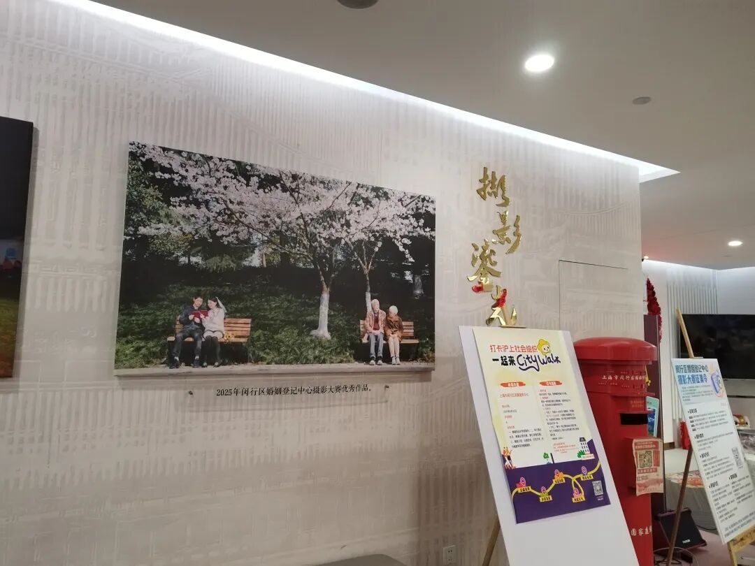 “我们工作生活都不在闵行,网上查了都说这里环境好,氛围感很足,对比之后,决定到这里。”一对刚领好证的新人对记者说,“这里拍照很出片,还有志愿者服务,细节做得很好。”