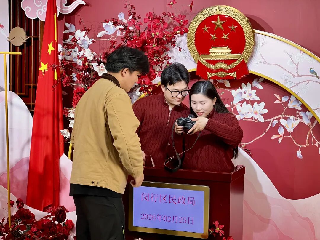 “现在的年轻人,大多不满足于简单的领证,更希望能够留下美好的回忆。”闵行婚登中心主任聂晶告诉记者,“很多新人会戴着头纱,带着家人或摄影师来跟拍,不管是环境还是服务,我们都在努力满足大家的期待。”