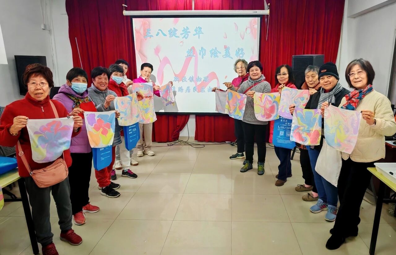 双流居民区的非遗水拓丝巾活动中,女性居民们轻滴颜料、随心勾勒,让色彩在水中绽放,再将独一无二的纹理转印至丝巾,将稍纵即逝的美定格为永恒的优雅。而在华松和刘一居民区举办的DIY手工活动中,女性居民们欢聚一堂,将雅致的非遗宋锦面料变成了一只只灵动可爱的“小马”挂饰,寄托了对平安顺遂的祈愿。