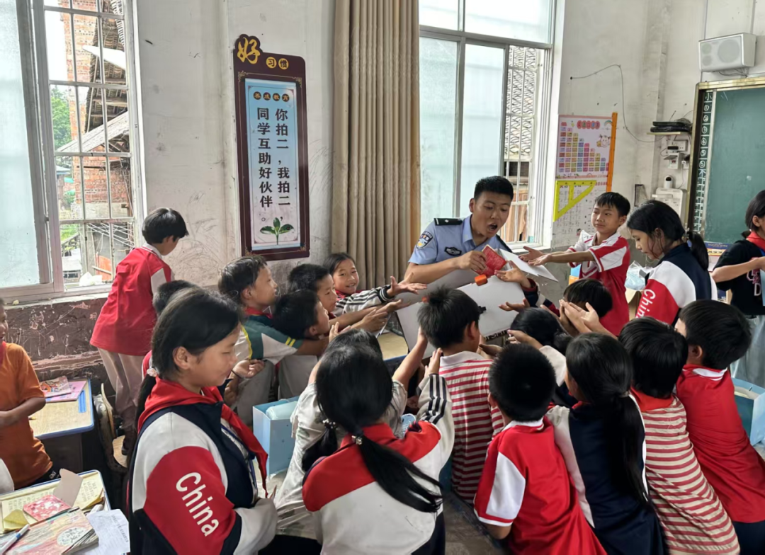 教师节那天,莫浩像往常一样走进教室,认真上课,丝毫没有察觉孩子们的“小秘密”。孩子们悄悄凑在一起,把提前准备好的手作礼物送到他面前:有用彩纸折的星星与千纸鹤,有用树叶和花粘成的贺卡,还有写满祝福的小纸条。“莫老师辛苦了!”“感谢莫老师对我们的教导!”一句句稚嫩又真诚的话语,让这位平日里阳光开朗的00后新警瞬间红了眼眶。他捧着一堆并不贵重却重若千斤的小礼物,心里涌起一阵难以言说的柔软与动容。那一刻他深深感受到,自己付出的每一份耐心、每一堂课、每一次陪伴,都被孩子们悄悄地记在了心里,成为他坚守的最大动力。