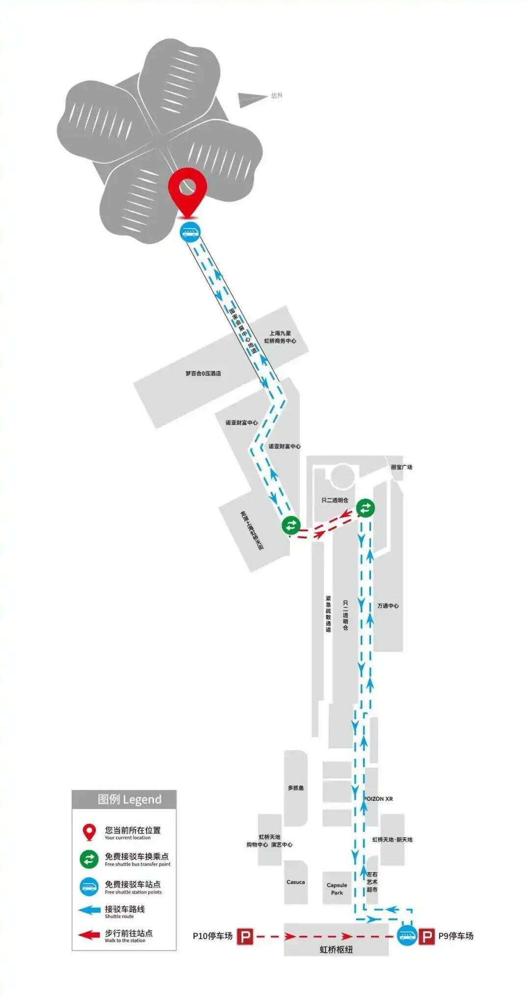 在解决展会通行难题的同时,虹桥驿道接驳班线以更科学的线路规划,成为连接展会与商务区商圈的重要纽带,让展会流量成功向商业“留”量转化。班线串联起了虹桥国际中央商务区各大核心商圈,虹桥新天地、龙湖虹桥天街、虹桥汇、诺亚中心、万通中心等商业体均被纳入线路范围,地图卡片与电子地图也清晰标注了沿线商圈的位置,让参展观展人员在便捷参会的同时,能轻松前往沿线商圈,实现休闲、娱乐、消费的一站式体验。
