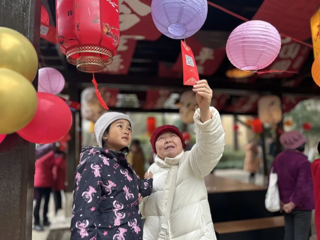 元宵节当天,最令人期待的“花栖亭”揭幕仪式到来了。在大家的共同见证下,崭新的“花栖亭”匾额被揭开红绸,墨香浓郁的条幅安置于亭内横梁之下,精美的画作灯笼点缀其间。修缮一新的“花栖亭”古朴素雅,又因这些充满生活气息和艺术美感的居民作品而熠熠生辉。