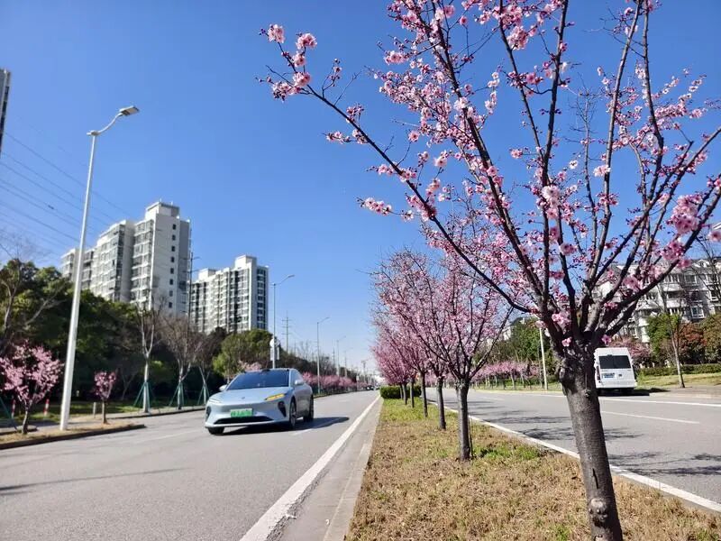 早春时节的宝山,铁山路可能是最美的市政道路之一。元宵节后天气渐暖,铁山路上的美人梅也迎来了盛花期,为来往行人打造“最美街景”。