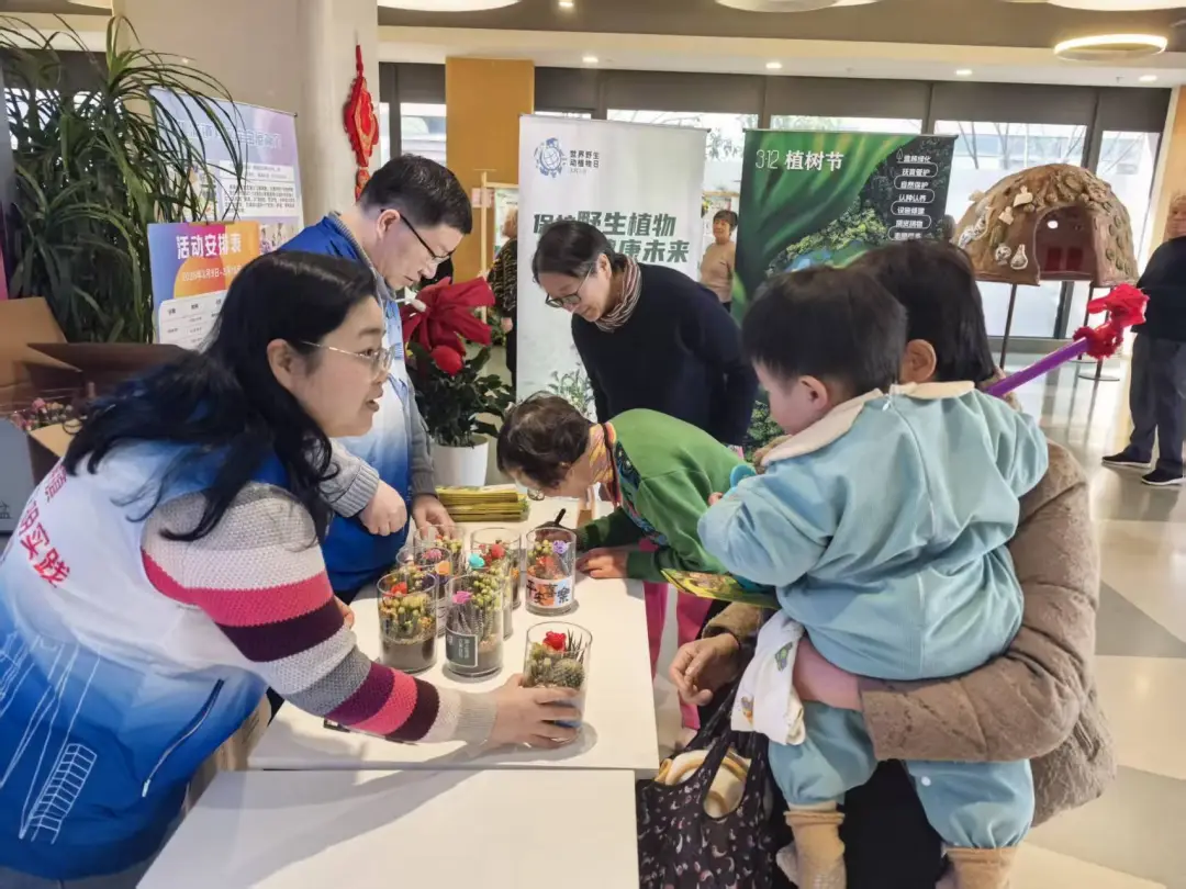 桃浦镇则将植绿护绿与野生动植物保护宣传巧妙地融为一体,吸引了众多居民热情参与。植物认养区内,居民们有序完成登记签到后,便可领取一盆精致的多肉盆栽。工作人员细致地向居民们普及绿植养护技巧与绿化保护知识。活动现场准备的400盆多肉植物,不到2小时便被认领一空。野生动植物保护宣传区域,一场妙趣横生的知识竞答火热开展,题目囊括了野生动物保护的基础知识、相关法律法规等诸多方面,诸如“发现受伤的野生鸟类正确的做法”等,有力地助推了“关爱野生动植物、共建生态家园”良好社会氛围的营造。