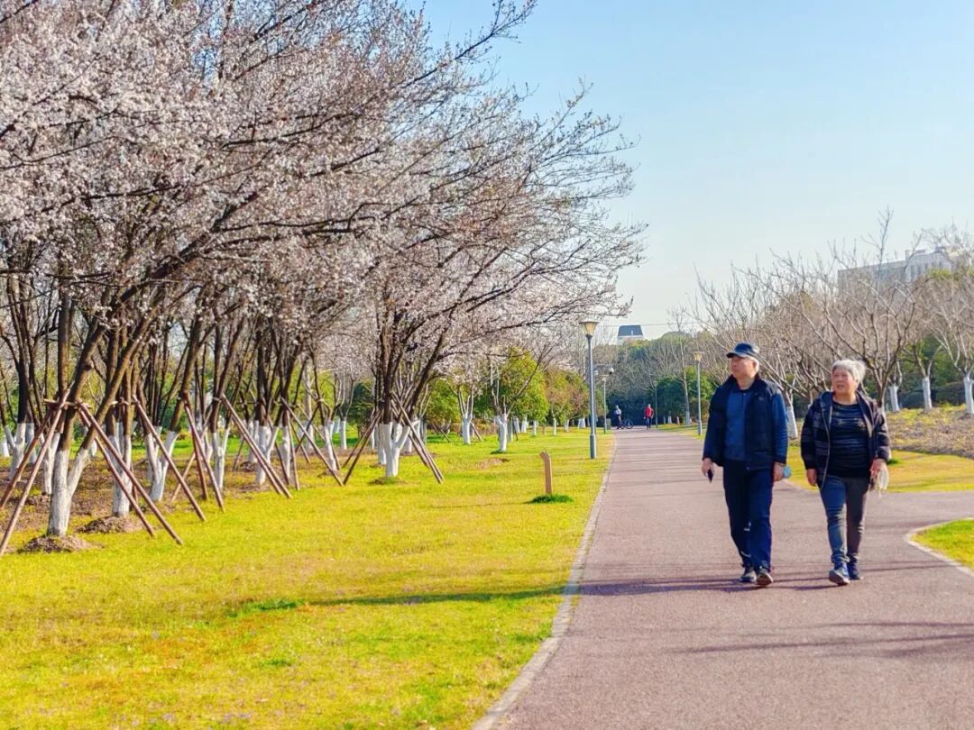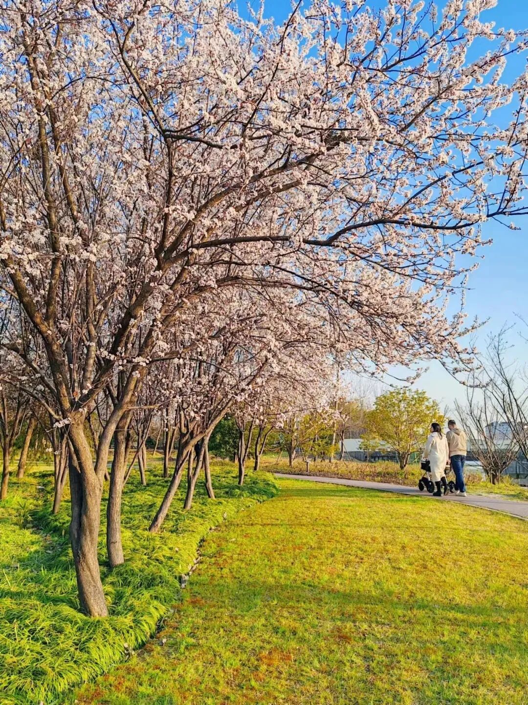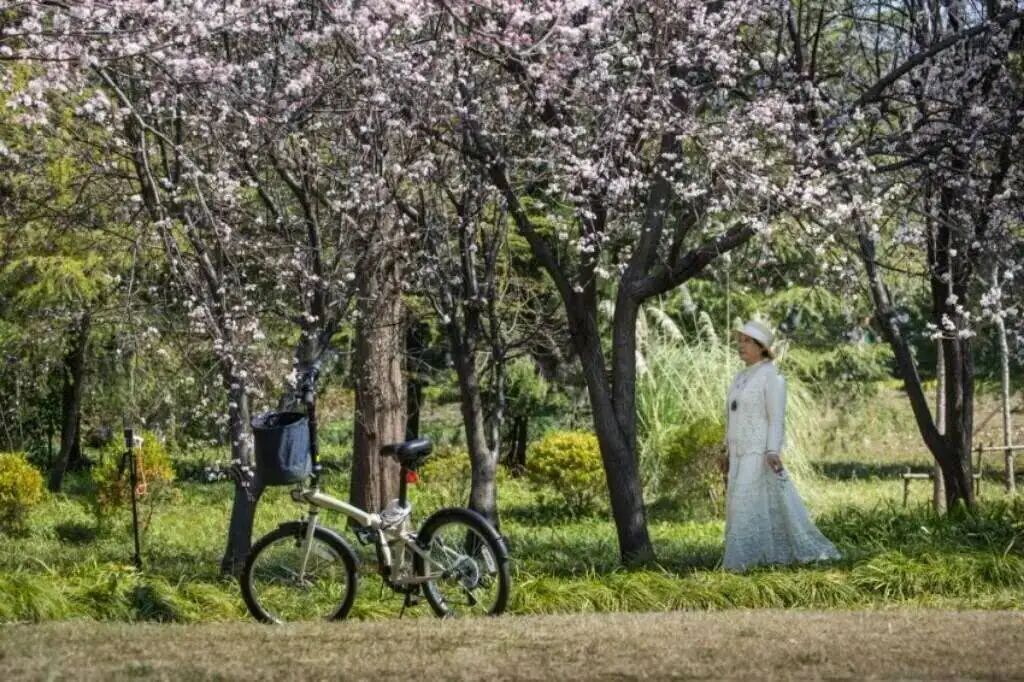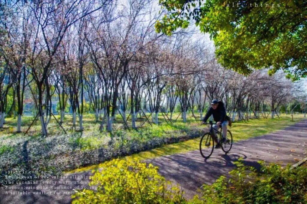 此外,绿道内的“水境杉林”区域也是赏花的宝藏点位。这里阳光充沛,花枝相对低矮,无须拥挤便能悠然赏景,是拍摄春日人像大片的绝佳选择。