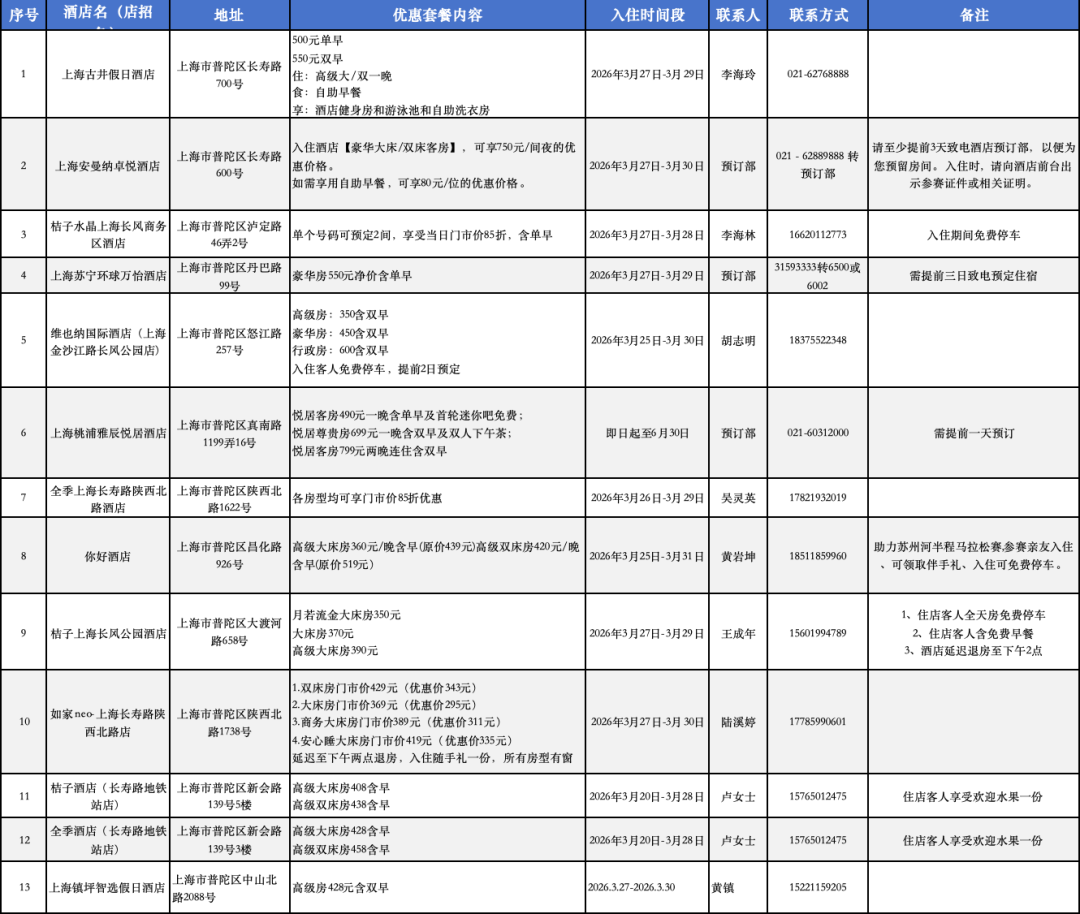 普陀13家酒店联动,跑者专属住宿福利发布!