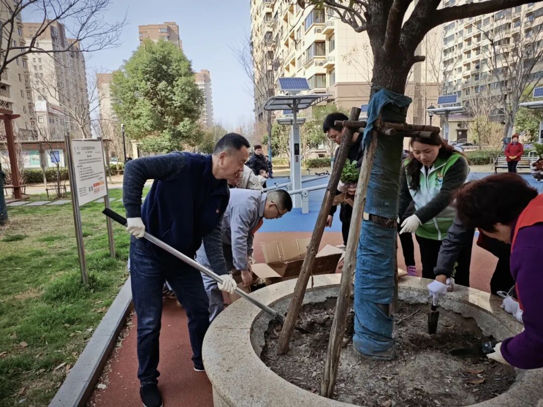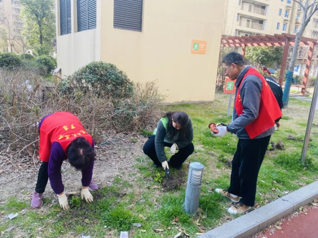 佳翔苑居民区、金丰苑第一居民区组织了社区热心居民、志愿者及物业,共同参与植树节主题活动,在社区小花园开展花卉灌木种植活动,积极弘扬植绿、护绿、爱绿的文明新风。居民区提前备好花木苗种及工具,居民们热情参与,松土挖坑、扶苗培土、浇水施肥,分工协作,默契配合。经过共同努力,一株株新苗错落有致,为小花园注入了蓬勃生机。不仅美化了环境,更增强了居民对社区的归属感与凝聚力,生动诠释了“共建共治共享”的治理理念。