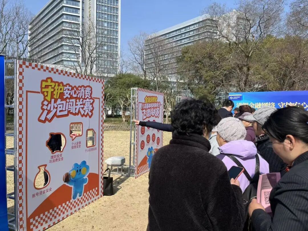 在互动体验区,“守护安心消费沙包闯关赛”“96110反诈套圈挑战”“金融消费者八项基本权利飞镖盘”等趣味游戏吸引不少居民参与。参与者通过投掷沙包、套圈或飞镖,在完成游戏挑战的同时识别常见诈骗套路,了解财产安全权、知情权、公平交易权、信息安全权等消费者基本权利。寓教于乐的形式,让不少居民直呼“既好玩又涨知识”。