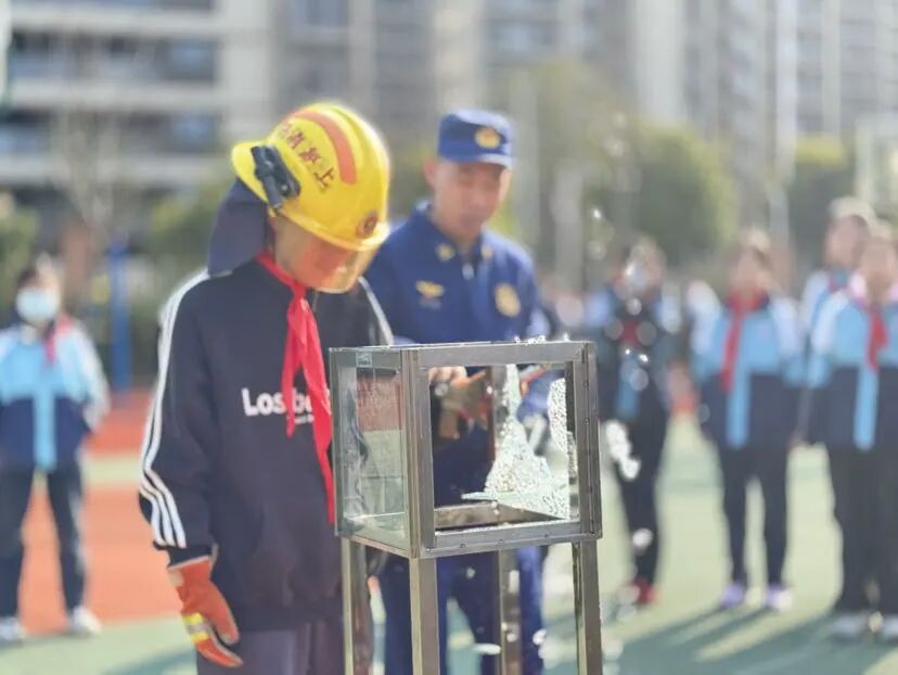 操场上,一名初中生拿起逃生锤,对准车窗玻璃轻轻一敲,整块玻璃瞬间碎裂,直观生动的实景教学环节,让同学们近距离掌握紧急情况下的逃生破窗技能,安全知识入脑入心。学生陈思旭表示,消防员叔叔走进校园,让我了解了很多从前只能在书本上看到的知识。在实践中,大家学会了使用逃生锤、防毒面具和灭火器,掌握了遇到危险时的逃生自救方法。
