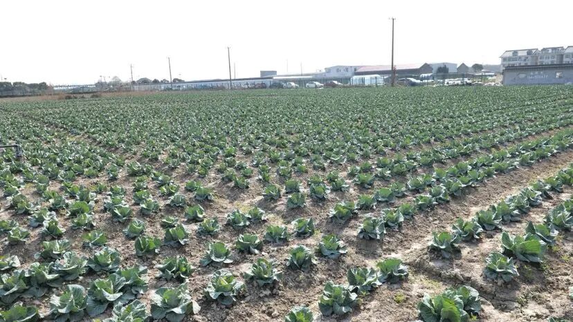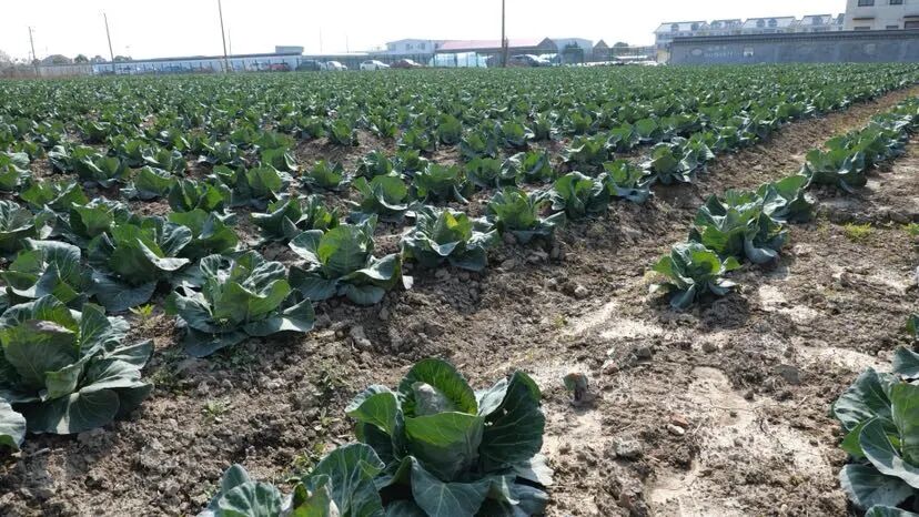 记者在御源农业专业合作社看到,连片菜田绿意涌动。青翠挺拔的青菜水润多汁;香气浓郁的蓬蒿长势喜人;鲜嫩可口的春菜正值最佳赏味期。近10亩甘蓝菜长势格外喜人,深绿的叶片层层包裹,菜球圆润饱满。基地采用科学种植与精细化管理,甘蓝亩产量可达8000斤,产量优势显著。目前这批甘蓝即将成熟,再过一周即可集中采收上市。上海御源农业专业合作社负责人说:“合作社以生产绿叶菜为主,像高秆蓬蒿、矮脚蓬蒿、杭白菜、青菜、春季甘蓝,还有我们的特色产品芽苗菜,都大量上市。”