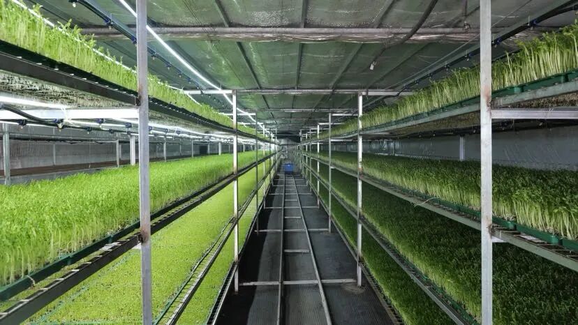 芽苗菜作为基地重点推广的特色项目,凭借生长周期短、复种指数高、营养丰富的优势丰富了春季菜篮子。走进芽苗菜生产车间,多层立体种植架上,豌豆苗等芽苗菜郁郁葱葱、鲜嫩挺拔,细长的茎秆顶着嫩绿的叶片,层层叠叠铺满架面。棚内温度与湿度精准调控,让芽苗菜长势迅猛,清香气息扑面而来。上海御源农业专业合作社负责人表示:“芽苗菜生长周转速度快,大约8天就产出,一个棚的产能相当于100亩土地,产量非常高,对合作社蔬菜产量提升起到了重要作用。”