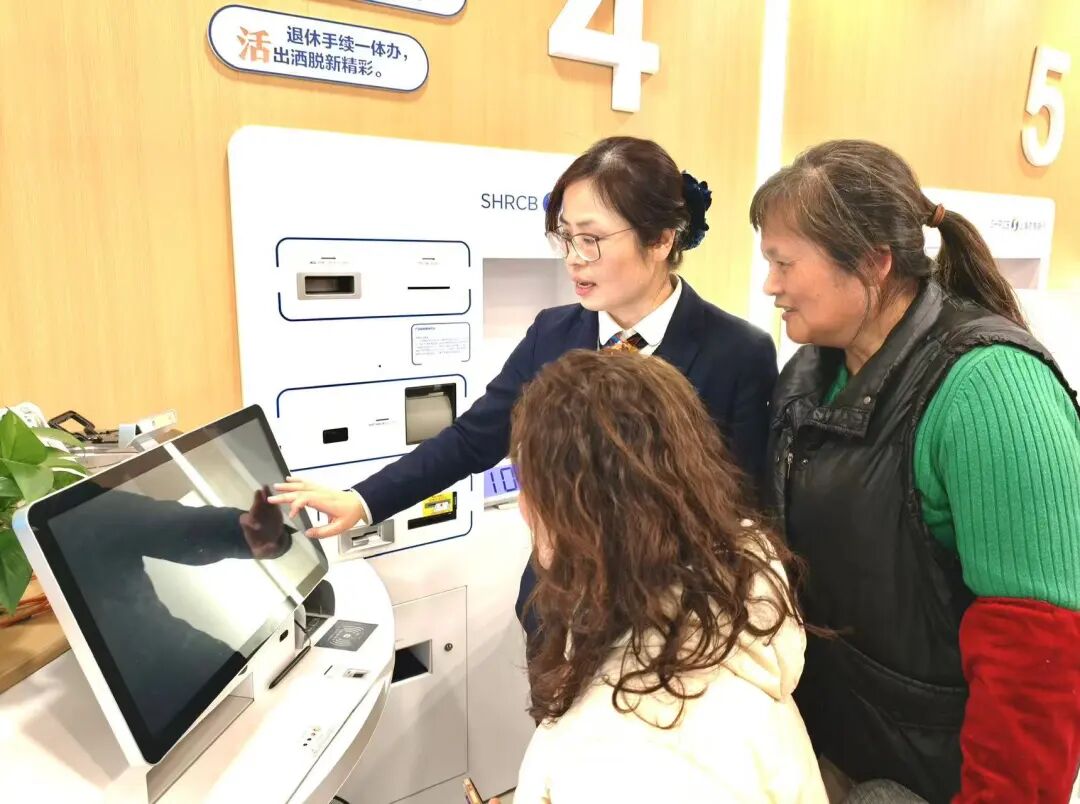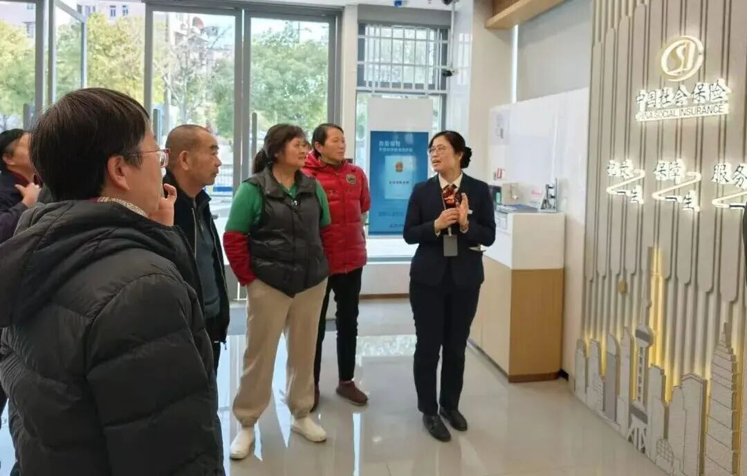 步入集社保服务与金融服务于一体的特色银行网点,这里打破了传统银行柜台的刻板印象,从硬件设施到软件服务,处处体现着对老年群体的温情关怀,让老年朋友们顿时感觉眼前一亮。在银行工作人员的引导陪同下,老年朋友们依次参观了“民申社”社保网办专区、社银直联智能服务专区及社保贵宾服务室等特色区域。在智能服务区,老年人体验了养老金卡(折)调整等自助服务,大家不禁感叹以前要去社保中心排队办理的业务,现在在银行里动动手指就能办了,真是太方便了。