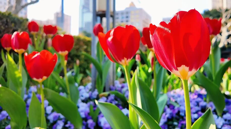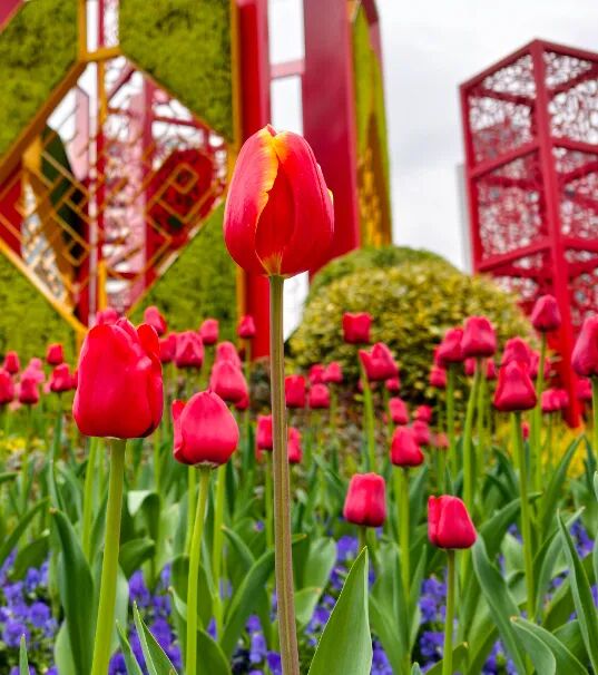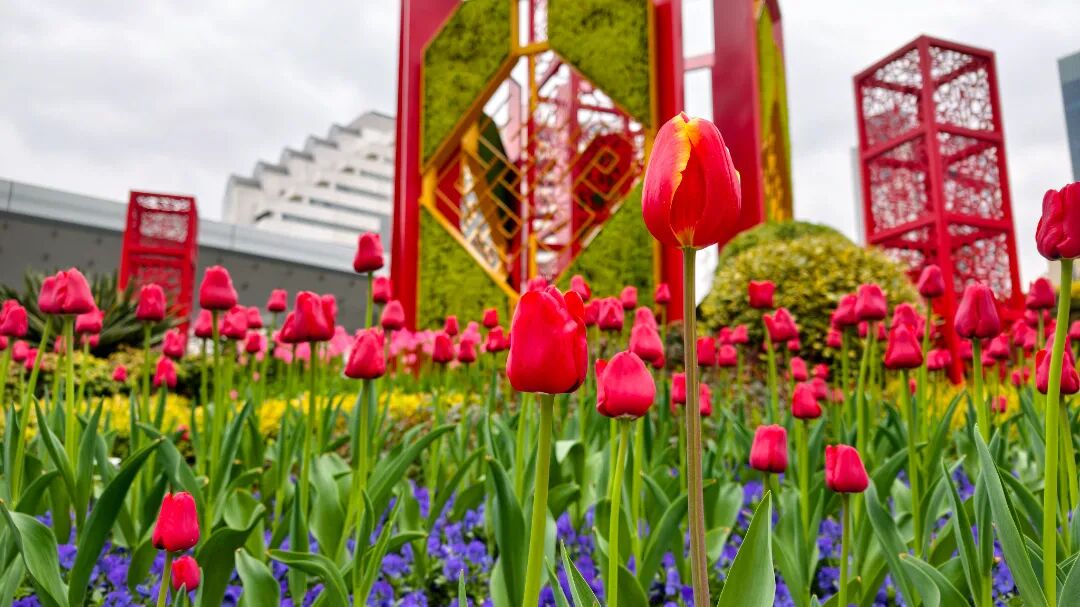 步行节奏可自由掌控,如果是晴天,建议避开正午强光,选择清晨或傍晚前往,此时光线柔和,能更好捕捉郁金香的莹润质感与建筑的线条美感;逛累了到附近的商场歇歇脚,点一杯饮品,搭配一份小甜点,解锁“赏花+休闲”的双重乐趣。