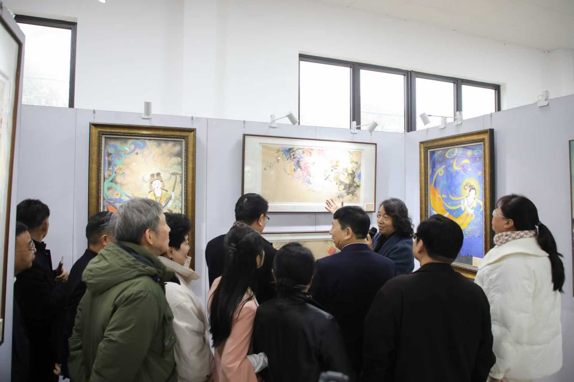展览集中呈现孟刚先生近年创作的三大系列数十幅精品画作,全面展现其艺术脉络与创作理念,沉浸领略大美敦煌、国风古韵、灵修自然系列作品之美。不同于传统美术馆,展地依托桃林生态景观,打造“艺术+自然”的独特观展场景。当前,桃林正值盛花期,粉白交织的桃花缀满枝头,与孟刚笔下的飞天神韵、古代仕女遥相呼应。