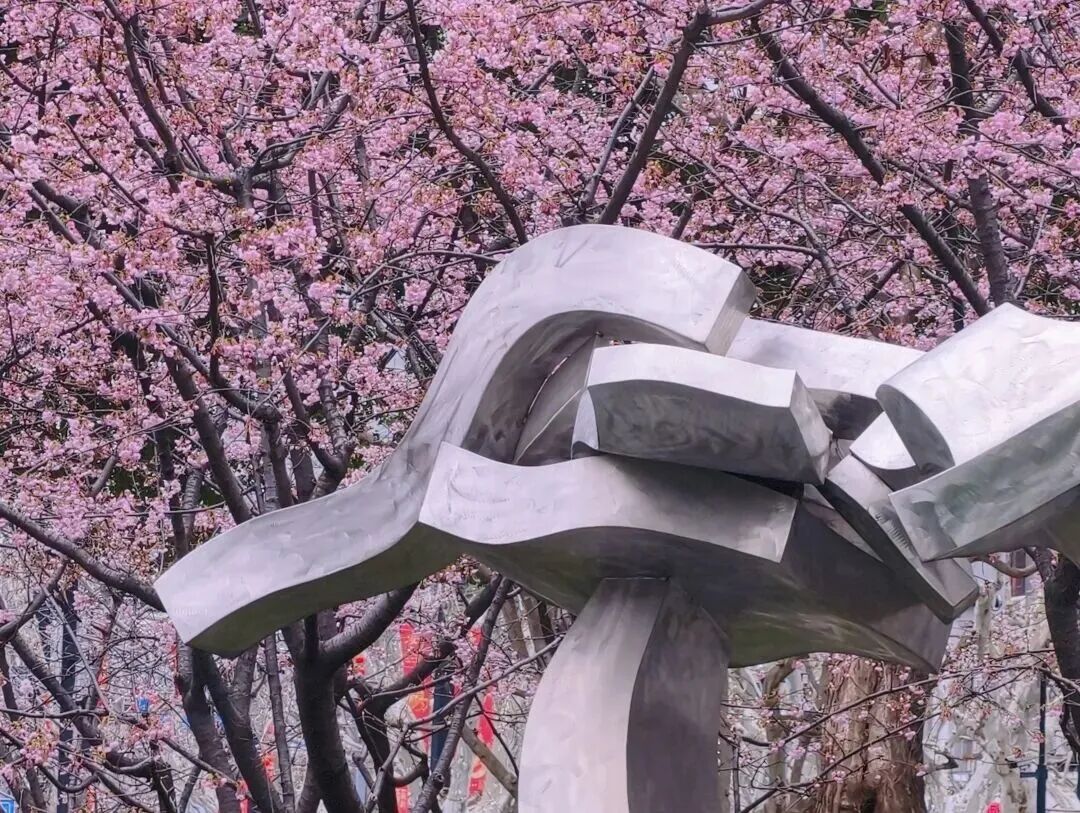 漫步在苏河湾万象天地,粉色的樱花如云似霞,勾勒出苏河湾独有的都市春意。