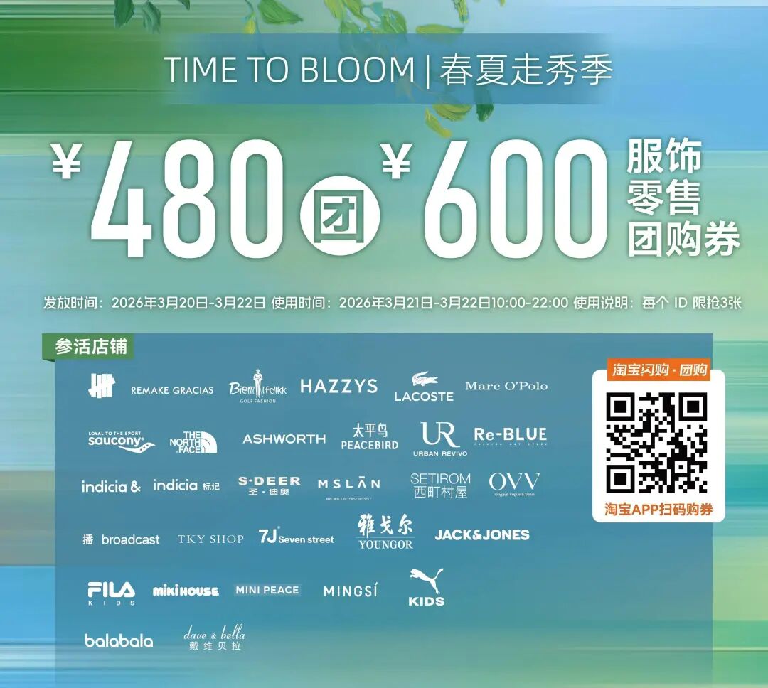 观秀打卡之余,惠民消费福利同步上线。为回馈广大市民,中海真如环宇城MAX推出专属服饰团购福利:480元团600元服饰零售类团购券,超值折扣力度拉满。该团购券适用范围覆盖本次走秀大部分参与品牌,让大家在欣赏时尚大秀的同时,轻松焕新春日衣橱,实现“打卡+看秀+购物”三重快乐。