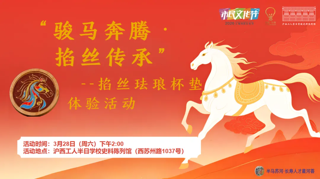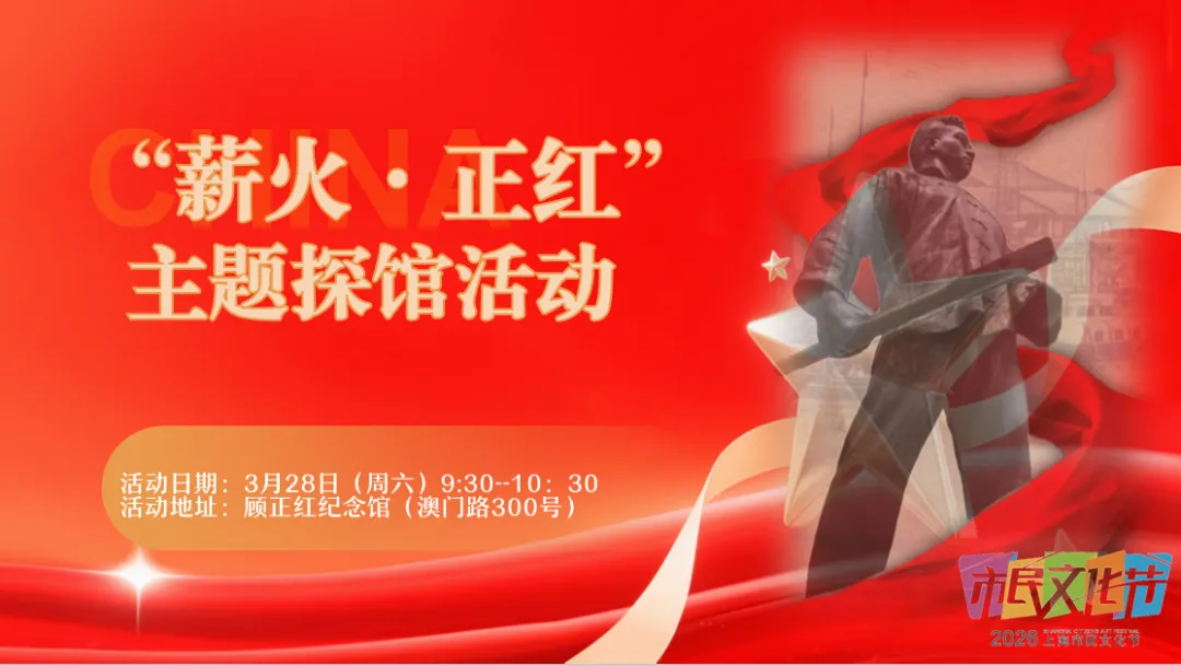 值此2026上海市民文化节“城市美育日”,顾正红纪念馆、沪西工人半日学校史料陈列馆及苏州河工业文明展示馆联动推出系列沉浸式体验活动,带你从“看展览”走向“玩互动”,在非遗手作、老物分享、红色闯关中,感受有温度、有故事的文旅新体验!