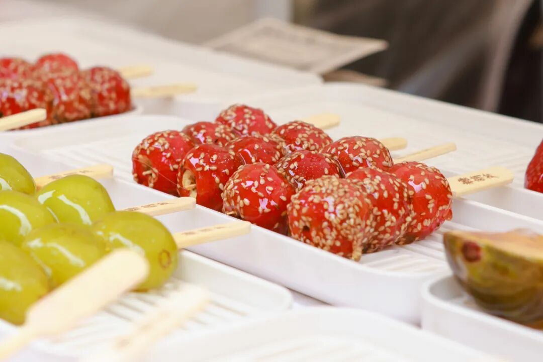 甜品小吃:现做华夫饼、老北京冰糖葫芦、巨型棉花糖,每一口都是幸福感。