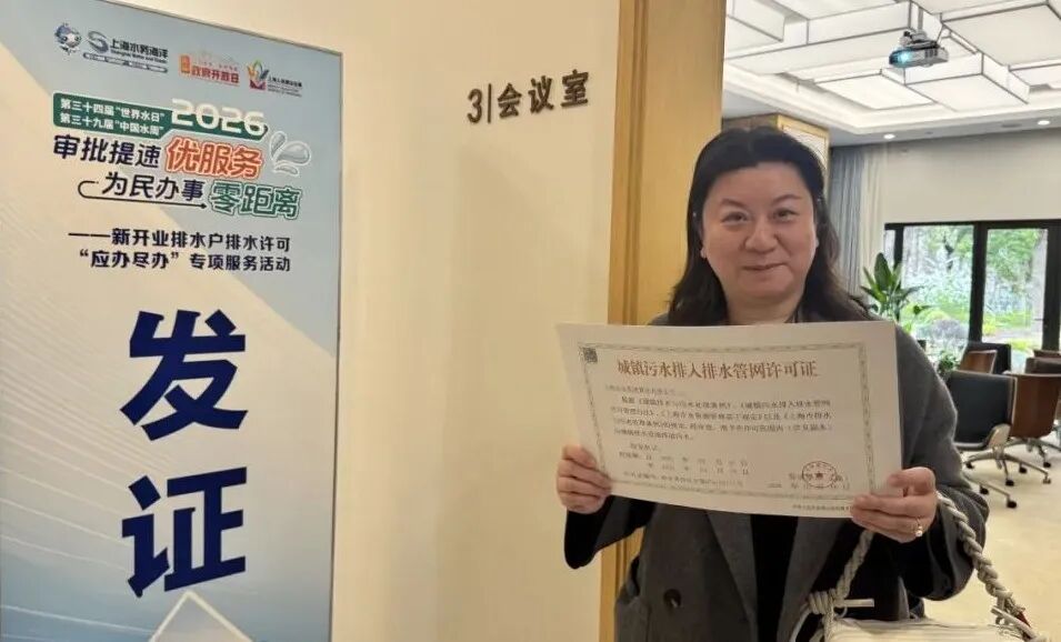 同样感受到便利的还有上海友谊集团置业有限公司的办事员蔡女士。活动现场开辟集中发证通道,当场为符合发证条件的排水户核发城镇污水排入排水管网许可证。蔡女士所在的企业负责一处保障性租赁住房项目,配套的商业餐饮急需办理排水许可证。“我提前在网上填写资料,提交申请,流程非常清晰。今天过来,20分钟全搞定了,你看这许可证热乎乎的,新鲜出炉。效率真的太高了,以前恐怕要两周左右的时间。现在时间真的很宝贵,为我们省了很多心力!”蔡女士表示,一站式服务不仅节省了时间,也让她切实体会到政府部门为民办实事的诚意与速度。