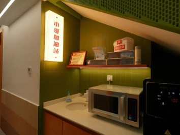 走进中心,社区食堂内香气四溢,不仅满足了新就业群体“吃饭难”的迫切需求,还有中医养康室提供便捷的理疗服务,为奔波忙碌的人群缓解疲惫。社区公共客厅温馨宜人,成为大家休息交流的“避风港”;共享自习区安静整洁,满足了大家充电学习的需求。此外,楼梯转角处设置母婴室、小哥淋浴间和暖心“加油站”,更体现了阵地服务的细节。