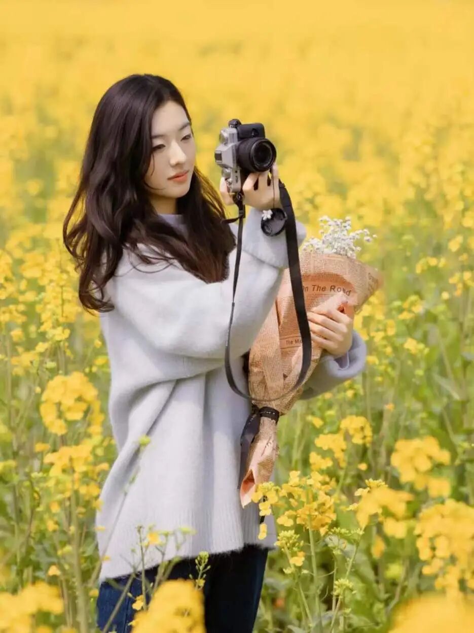 可以漫步花田间,以田埂为自然引导线,让身影融入无边花海;低角度仰拍,将澄澈蓝天与金黄花田一同框入镜头,画面干净又高级;轻倚花枝,让脸庞从油菜花间微微探出,定格花瓣轻拂脸颊的温柔特写,氛围感拉满。身着浅色连衣裙,搭配草帽、竹篮、帆布包等小物,往花田里轻轻一站,无需刻意摆拍,低头闻香、侧身望花、缓步回眸,每一帧都是独属于罗泾的春日诗意。