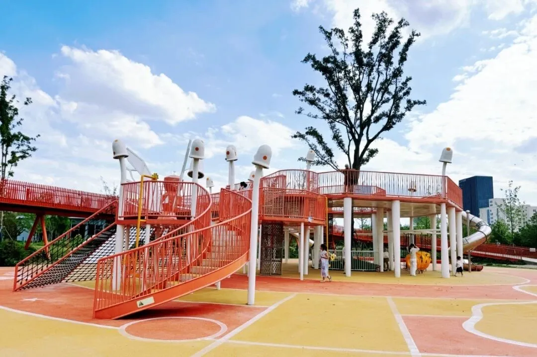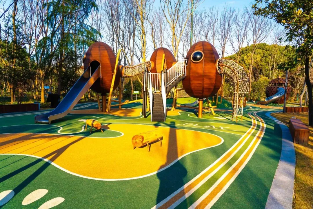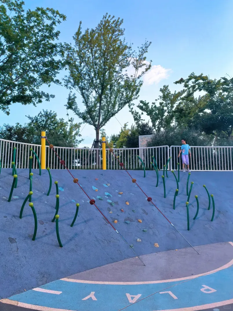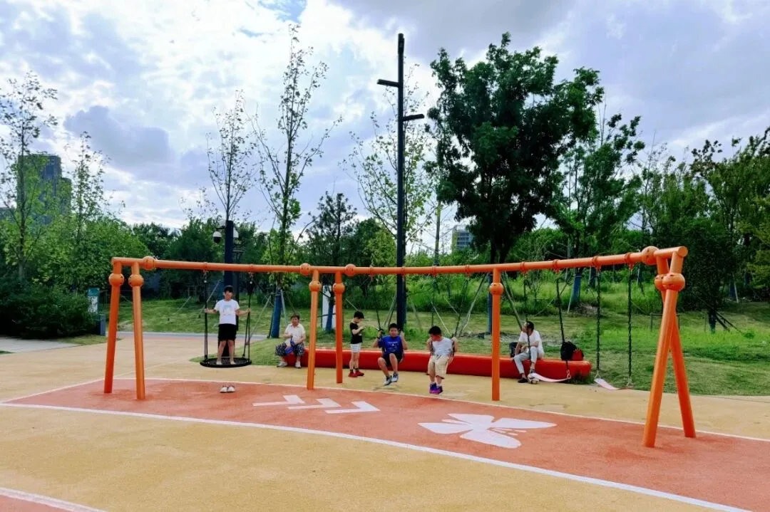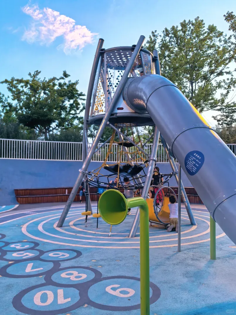 这里有孩子们最惦记的无动力乐园,导航到一尺花园,过桥右转,就能看到色彩明亮的滑滑梯。孩子们可以在草地上奔跑,攀爬网、沙坑玩个遍,家长则能慢下脚步,感受这座“城市绿肺”的艺术气息。