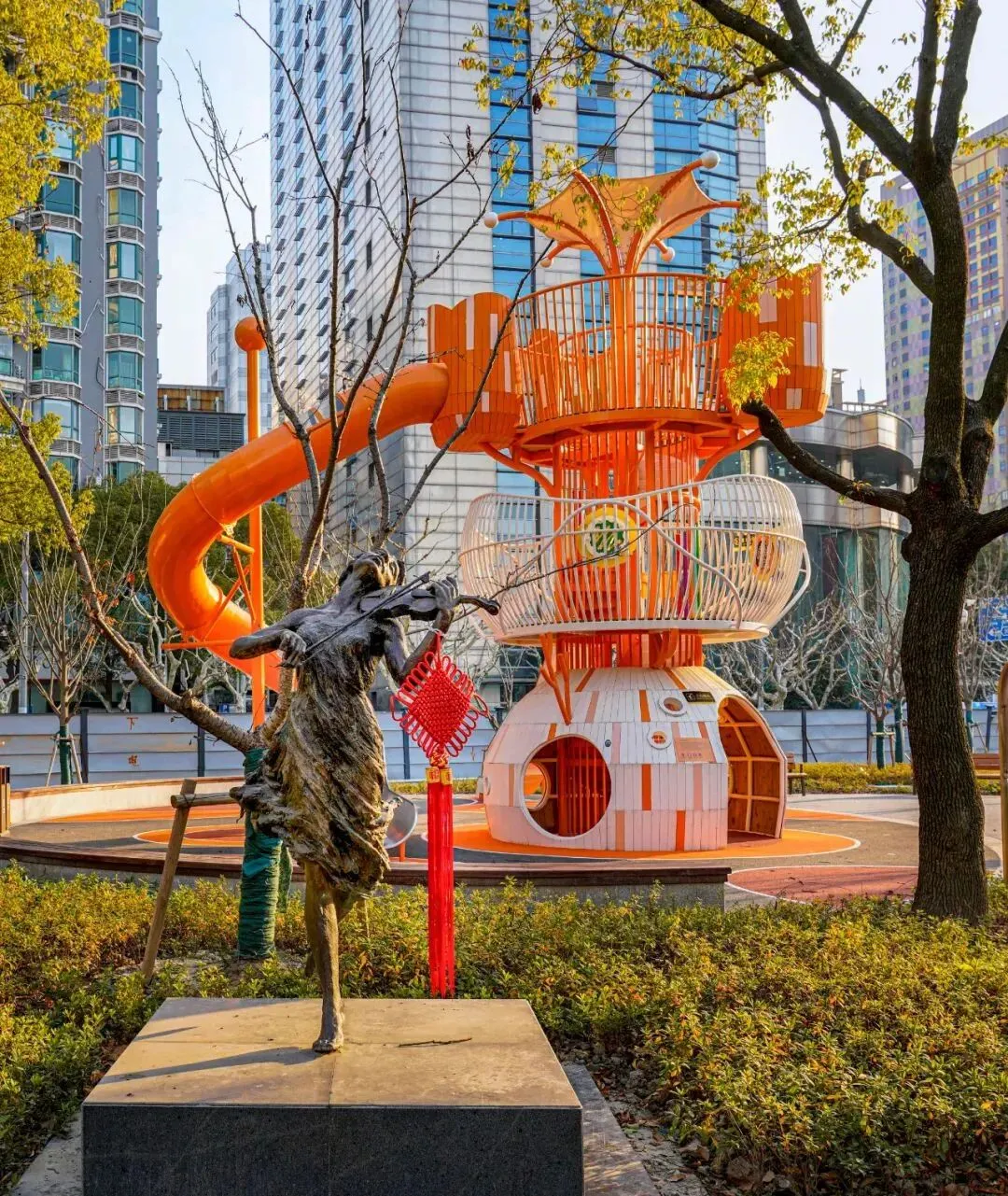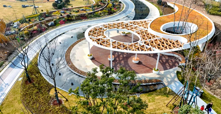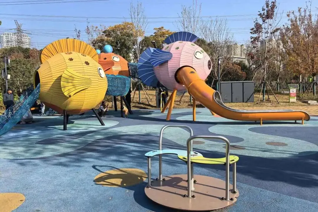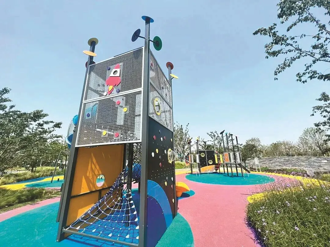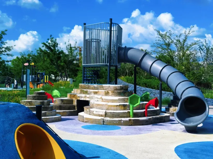这里有孩子们最惦记的无动力乐园,导航到一尺花园,过桥右转,就能看到色彩明亮的滑滑梯。孩子们可以在草地上奔跑,攀爬网、沙坑玩个遍,家长则能慢下脚步,感受这座“城市绿肺”的艺术气息。