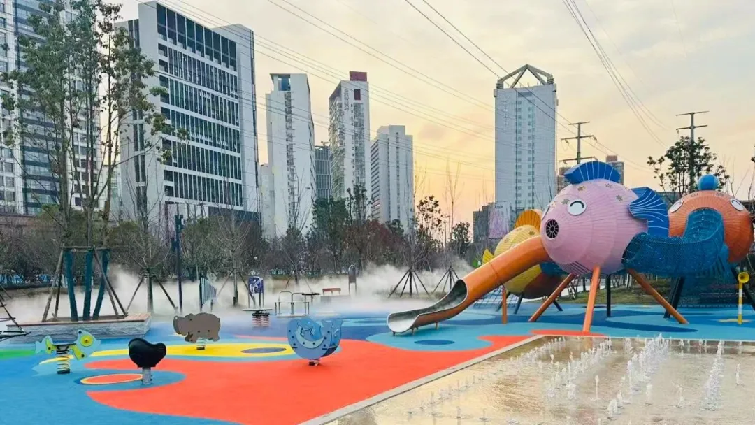 亲子游玩项目包含喷泉单车、泡泡森林、智慧足球等智慧化设施内容,打造了沉浸式儿童友好空间,让孩子们在玩乐中感受城市的温度。