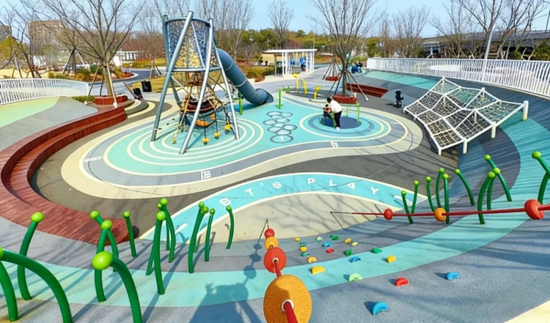 园内绿意盎然、步道蜿蜒,处处透着现代园林的精致与惬意,公园内设置了“潮玩汇”,是许多亲子家庭游玩的不二之选。