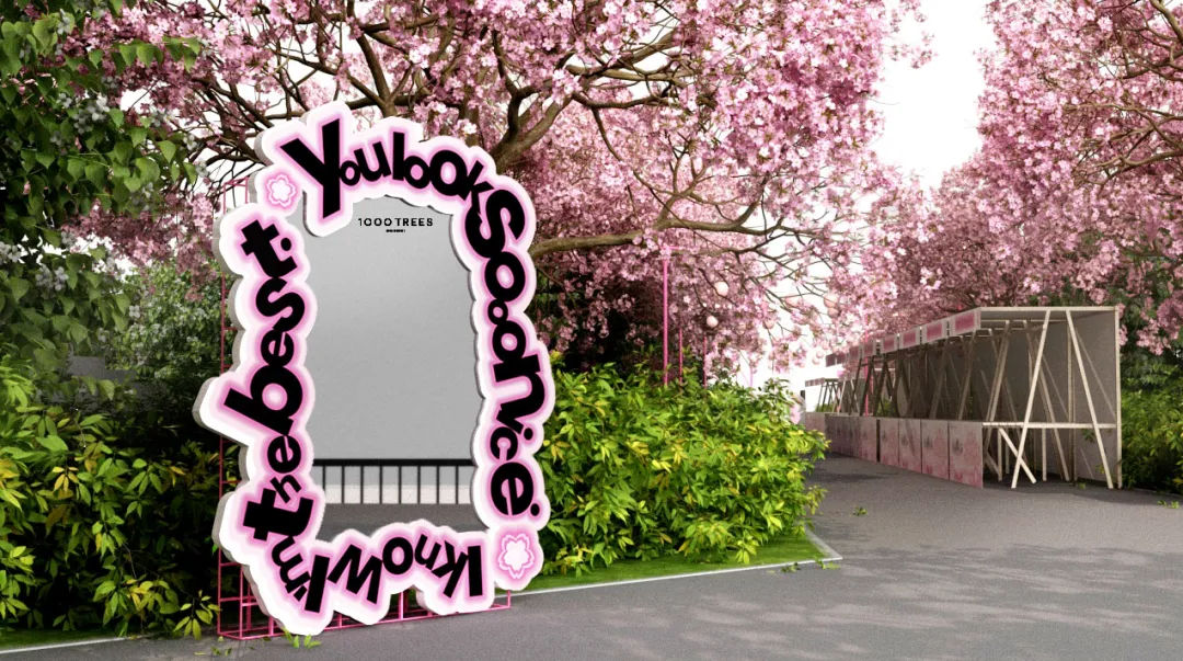 作为本次樱花季的核心看点,千树精心构筑了一场贯穿室内外的互动体验。在苏河沿岸,3组镜面艺术装置——“夸夸镜”“世界镜”“五连镜”悉数登场,通过镜面反射原理,将人、樱花与独特的“悬浮森林”建筑重组于同一画幅,为滨水步道增添极具视觉张力的美学体验。