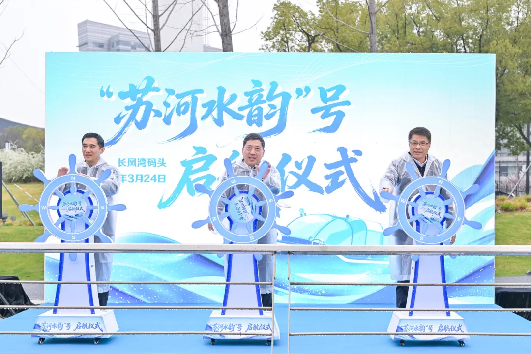 普陀区特色移动式节水宣传点“苏河水韵”号启航仪式率先举行。随着船舵转动,伴随着鸣笛声,这艘节水宣传“移动名片”正式驶离长风湾码头。作为节水宣传与苏河文化融合的创新实践,“苏河水韵”号将穿梭苏河之畔,把节水理念传递至千家万户。