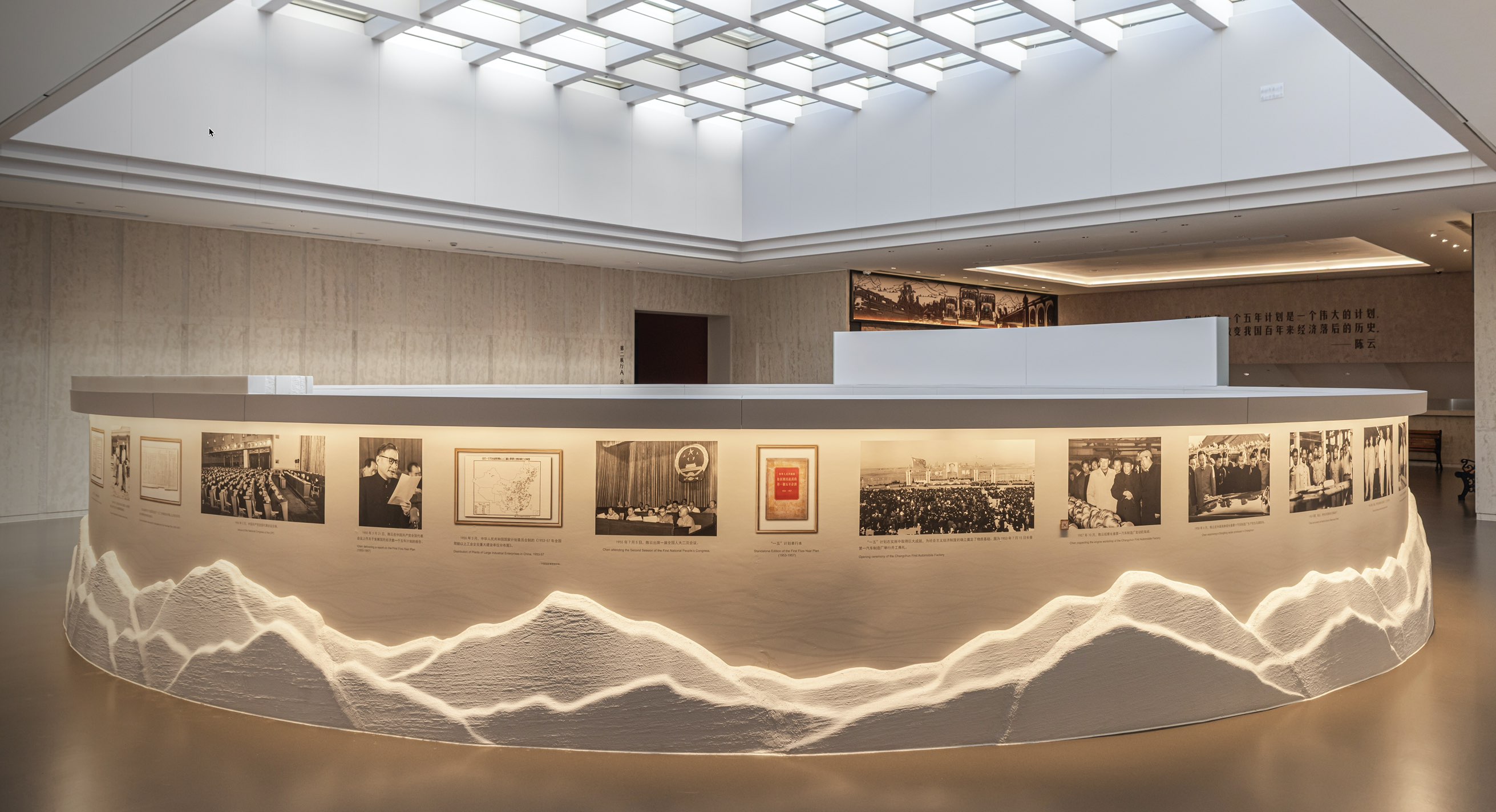 参观动线整体重置。展览面积4480平方米,展线575米,通过加装两部自动扶梯实现展线全面重置、单向闭环贯通。通过基础修缮,展厅高度平均提升近1米。同时将主馆二层近200平方米的中庭通道空间,改造为全景叙事空间,兼顾参观流畅度与内容呈现的层次感,使观众整体观展体验大幅提升。
