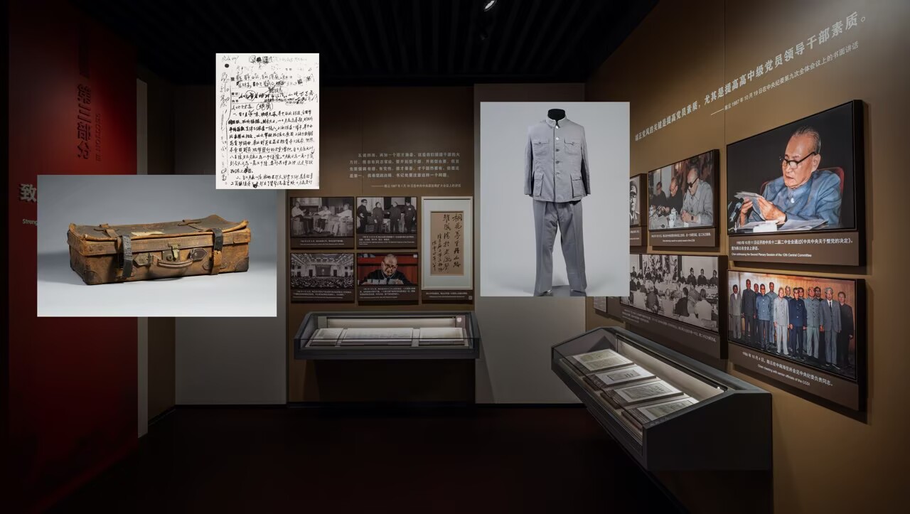 历史场景整体带入。基于历史考据,融合静态展陈与动态体验,复原延安场景展区、“一五”计划展区、江西蹲点展区、中南海旧居展区等6个核心场景。通过实物陈设与感官触发,为观众“走近伟人”打造沉浸式观展体验。例如:延安场景展区,用延安的黄土、窑洞场景、实物陈设等,带领观众“走进”革命圣地,体验陈云同志任中组部部长期间的学习和工作氛围,真切感受“共产党员的六条标准”跨越时空的思想力量。