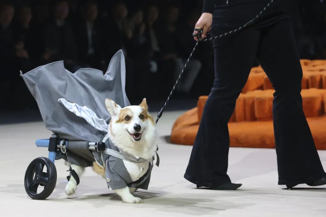 动感的音乐响起,“毛孩子”们轮番登场——有的身着精致的定制服饰,步伐轻盈,仿佛自带追光;有的披上潮酷的机能风夹克,昂首挺胸,眼神里写满“我就是主角”。它们或大摇大摆地踩准节拍,或迈着小碎步跑向T台前端,尾巴摇得像拨浪鼓,惹得台下快门声此起彼伏、笑声连连。