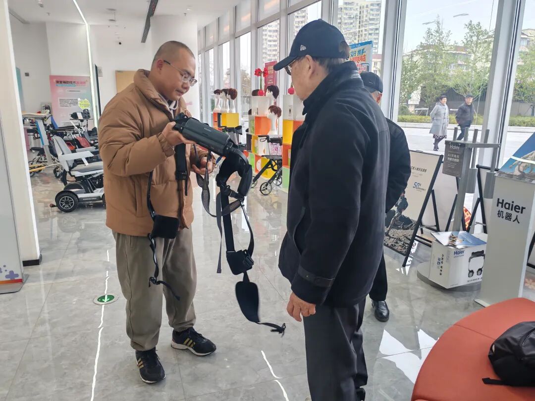 在银发商店的AI运动外骨骼机器人展示区,一款科技感十足的助行装置同样吸引了不少老年市民的目光,不仅可以详细了解情况,还能现场体验外骨骼装置的使用。“从惠民季开始,我们已销售了多台设备,期待越来越多高科技养老产品精准贴合老年群体的实际需求。”企业相关负责人表示。