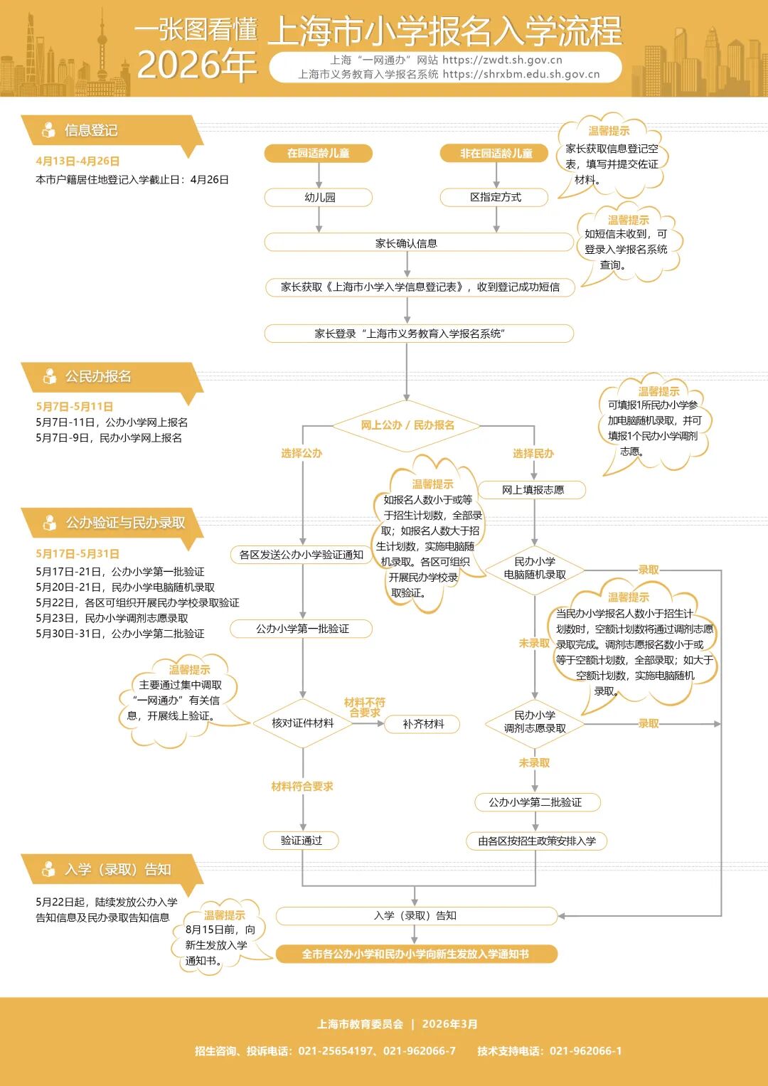 3月26日,上海市教委公布了《2026年本市义务教育阶段学校招生入学工作的实施意见》,政策与2025年保持一致,体现阳光招生、便民服务、不挑生源、保障公平的导向。