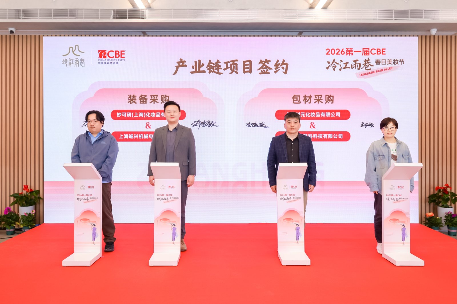 开幕式上,CBE冷江雨巷春日美妆节品牌正式启动,明确未来常态化举办方向,标志着庄行镇化妆品产业正式从“生产制造”向“品牌赋能”转型升级。依托CBE中国美容博览会的权威平台资源,庄行镇定向邀请原料研发、ODM(原始设计制造)服务、功效检测、品牌孵化等美妆产业链上下游企业及专业服务机构齐聚现场,充分释放当地打造美妆产业新高地的坚定决心。