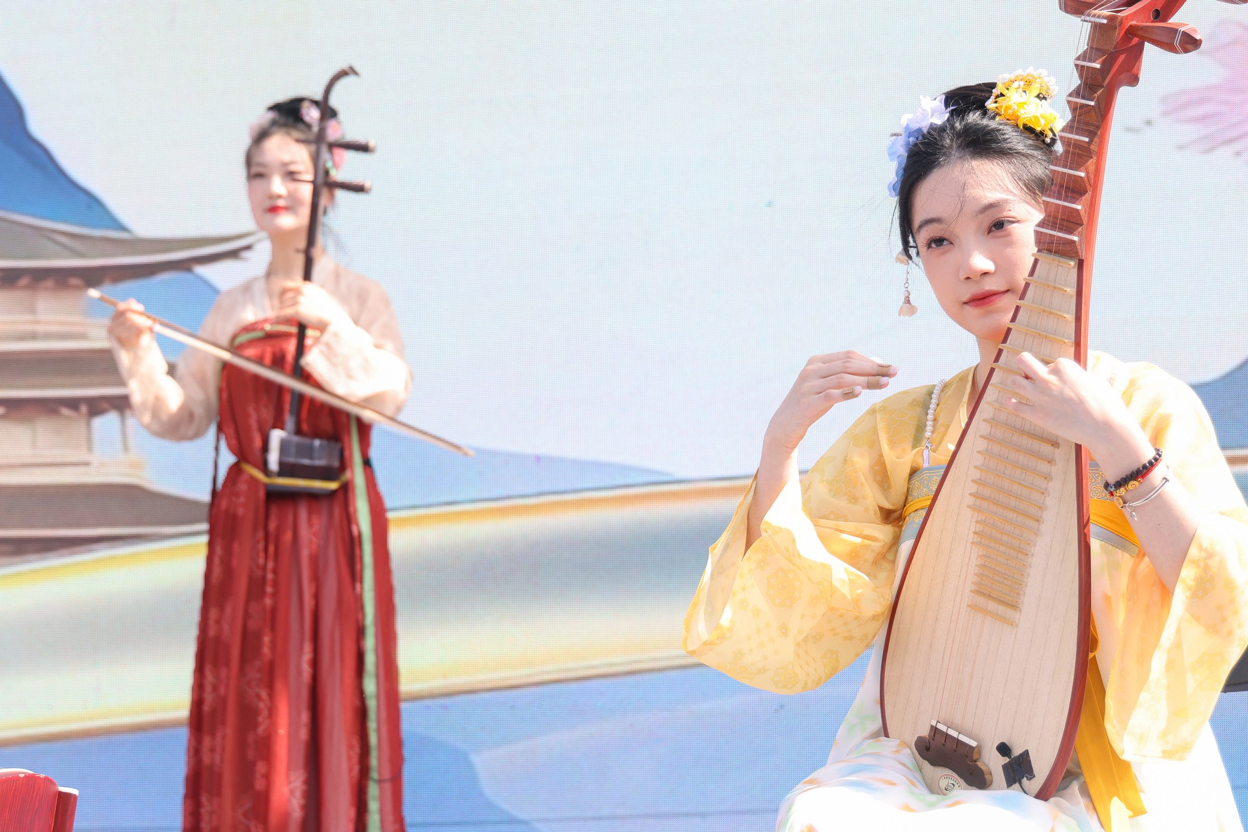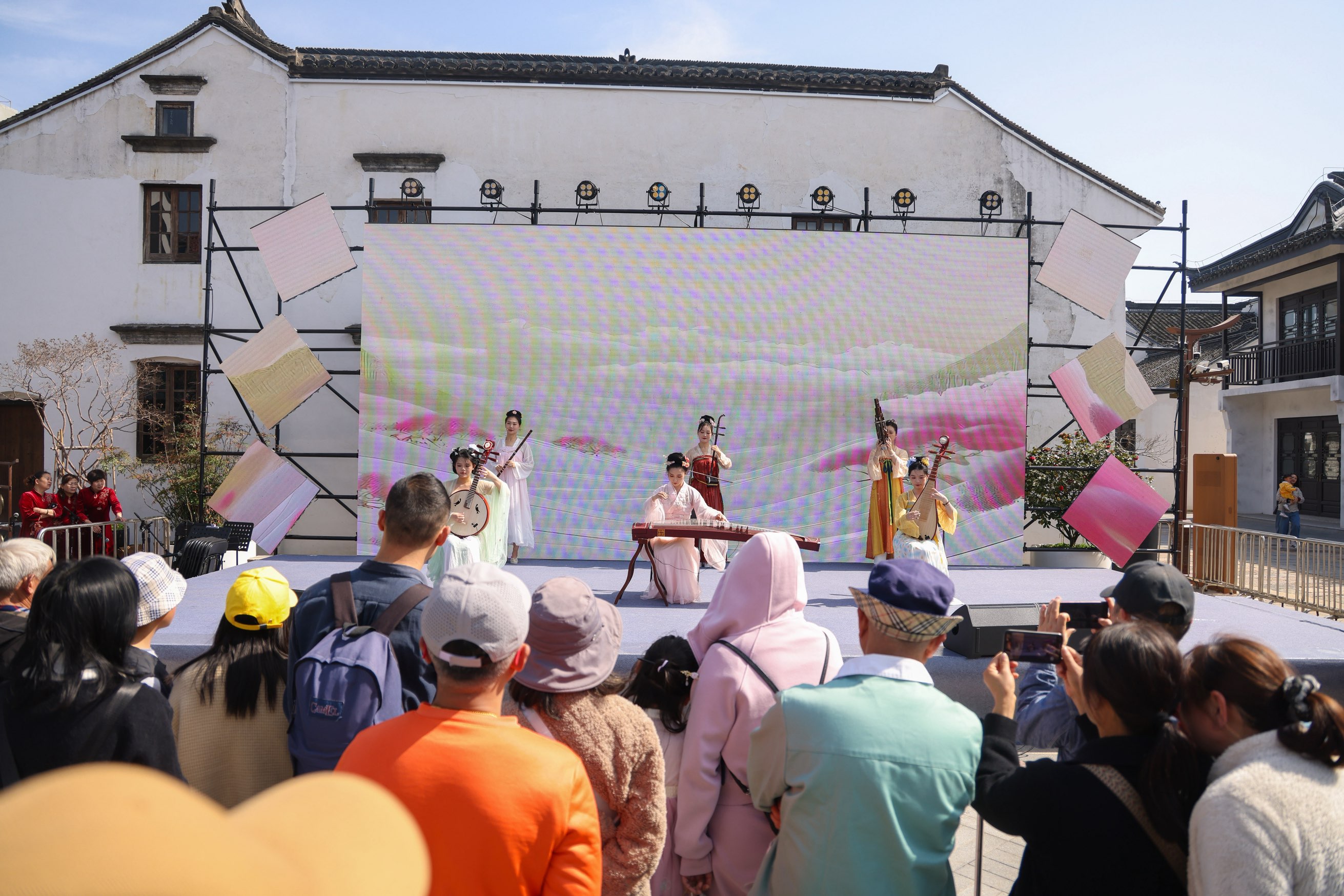 东方网记者王泳婷3月30日报道:春风和煦,古韵悠扬。近日,“美育润古镇锣鼓传雅音”泗泾十锦细锣鼓推广系列音乐会第二场,在松江泗泾古镇金石广场精彩奏响。丝竹声声婉转,锣鼓阵阵铿锵,这场兼具传统韵味与当代活力的展演,作为泗泾镇2026年非物质文化遗产推广系列活动的重要组成部分,以聚人气、接地气的演绎形式,让有着近三百年历史的国家级非物质文化遗产走进百姓生活。