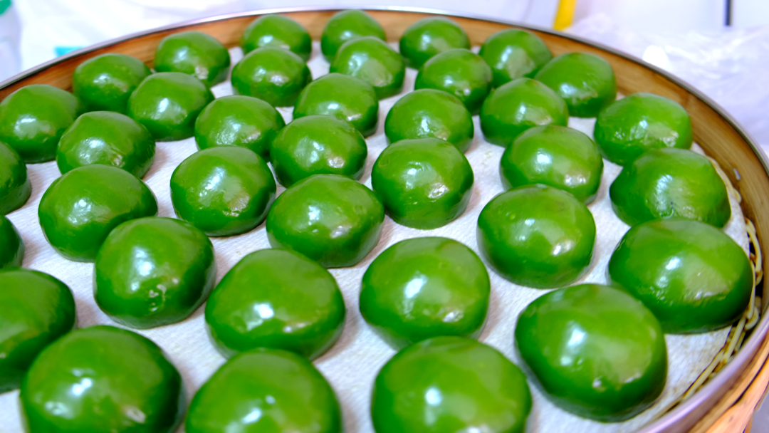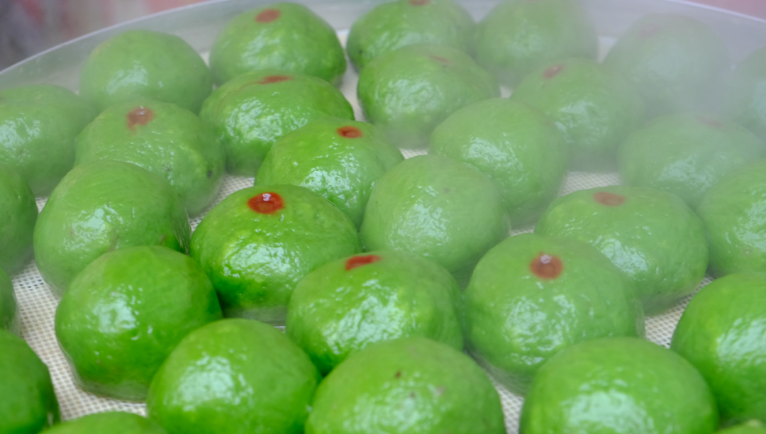 掰开一个看看内馅:细腻豆沙,甜而不腻;鲜嫩荠菜肉,咬一口满嘴春光;咸香蛋黄肉松,沙沙的口感在舌尖化开。上笼蒸腾,白雾缭绕中,热气里全是小时候外婆家的味道。这一口,是十年如一日的坚持手作,也是江川人心中熟悉的春日限定。