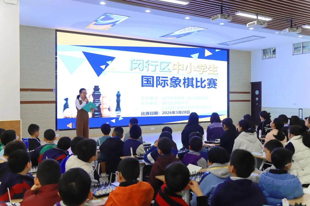 3月28日,393名中小学棋手齐聚闵行区罗阳小学,2026年闵行区中小学生国际象棋比赛在此拉开帷幕。