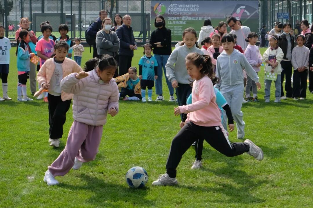 3月29日,在上海杨浦白洋淀足球精英基地,前中国女足国家队队长、杨浦区青少年业余体育学校女足总教练浦玮在场边指导足球爱好者们跑位、传球,来自杨浦区少体校的女足队的大姐姐们则化身“小教练”,带领着一群热爱足球的女孩分组对抗,开展趣味竞技。2026年“亚足联女足日”上海杨浦站活动在此温情启幕,榜样的力量与青春的活力在绿茵场上交相辉映,点燃了女孩们心中的足球梦想。